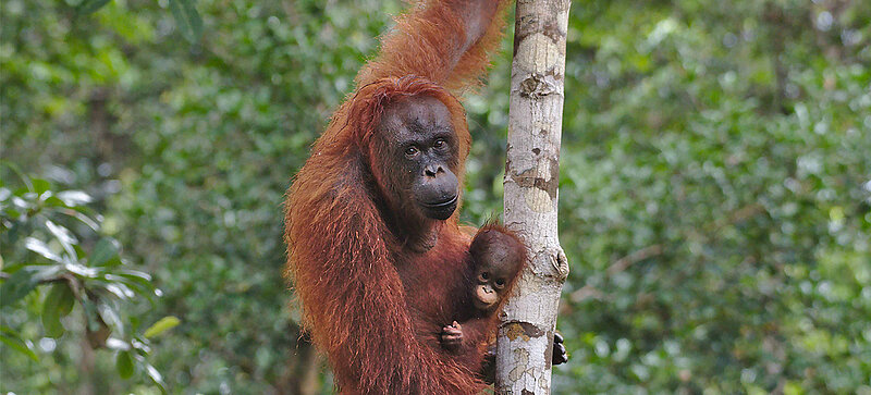 Klimatprojektet i Rimba Raya syftar till att skydda livsmiljön för de kritiskt utrotningshotade orangutangerna i Indonesien.