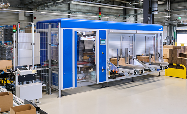 Alla som arbetar med att förbereda kartonger som ska fyllas med varor och skyddsförpackningsmaterial i förpackningsprocessen slipper nu vika och rikta upp kartongen för hand. Med AUTO.ERECT erbjuder Storopack ett mycket effektivare alternativ: automatiserad kartonuppriktning och förslutning av kartongens botten. Storopack-systemet hanterar uppgiften galant och kan bearbeta upp till fyra kartongstorlekar i slumpmässig ordning – en lösning som säkerställer maximal produktivitet i den intralogistiska processens sista led.